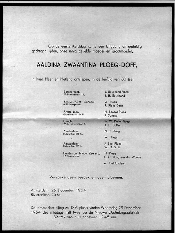 Aaldina Doff overlijdensbericht 1954