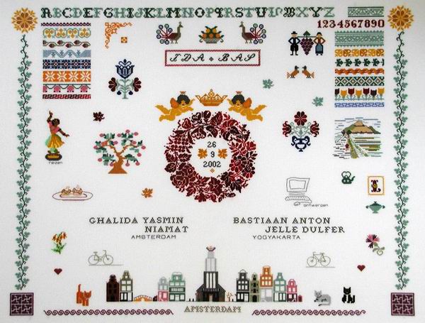 Merklap ontworpen en gemaakt door Lucie Dulfer-Luijendijk