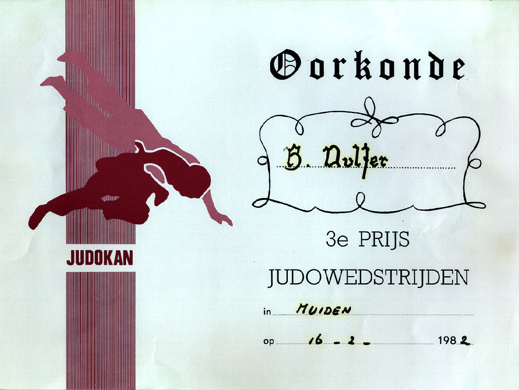 � oorkonde 3e prijs judo wedstrijden Muiden 1982 |