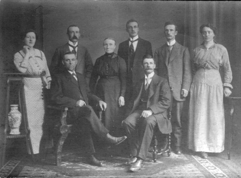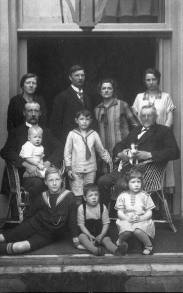 *) Sliepen samen in een bed, waardoor besmettingsgevaar groot was. Zie links een foto van Helena. **) Overleden bij geboorte van tweede kind. Eerste kind: Wies (Louise Gezina) ***) Gerrit Hendrik kreeg later ook TBC (zie vervolg) ****) maakte tijdens revalidatie het houten beeldje dat later naar Auk van Stralen-Dulfer ging. *****) genoemd naar zijn oom August Herman, geboren 6 augustus 1855 te Winterswijk. Familiefoto's Winterswijk Achterste rij: Aukje Dulfer-Eppinga