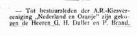 Gerrit Hendrik Dulfer (1885 - 1967) Maatschappelijke activiteiten Over zijn maatschappelijke betrokkenheid zijn alleen gegevens bekend over de periode 1919-1967 waarin hij in Ede woonde. Hendrik was actief in de hieronder genoemde organisaties. School met den Bijbel aan de Telefoonweg te Ede Hij was lid van het schoolbestuur van deze lagere school in de periode ...... Christelijke ULO school aan de Beukenlaan te Ede Hendrik was in 1922 ��n van de ondertekenaars van de oprichtingsakte voor de christelijke school voor Uitgebreid lager Onderwijs (ULO) te Ede. Hij was daarna 25 jaar secretaris/penningmeester van het bestuur. Bij zijn afscheid werd hij tot erelid benoemd en kreeg daarvoor een oorkonde (zie links). De school was gelegen aan de Beukenlaan te Ede. Zoon Henk en dochter Aukje gingen later ook naar deze school. Hendrik was jarenlang lid van de Verenigingsraad van de Nederlandse