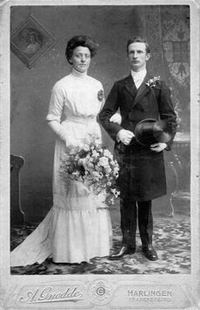Dulfer_Hieminga Huwelijk Getrouwd op donderdag 25 mei 1911 te Almenum. Zie huwelijksacte. Ontvangdag op donderdag 23 mei 1911 van 3-5 uur bij J. Hieminga (broer Jan U.), Midlumerweg 12, Almenum (?) Hendrik Dulfer leerde Yke Hieminga kennen op de ijsbaan in Harlingen. N.B. De trouwdatum 25 mei viel samen met de trouwdatum van Yke�s twee oudere zussen en oudere broer. Die waren alle drie tegelijkertijd getrouwd op 25 mei 1905. Ouders