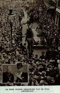 Dulfer -Johannes Hendrik (1912-1982) Loopbaan Van 1932-1952 werkzaam bij N.V. Verffabriek en Chemicali�nhandel MACOSTAN, Grotestraat 11 te Ede. De fabriek was in 1919 opgericht door en was eigendom van de broers de Nooij. De naam MACOSTAN was gebaseerd op de namen van hun vrouwen: MArie, COSTera, ANne de Nooij (echtgenoten van Piet, Zwerus en Ko de Nooij). Zwerus en Costera de Nooij waren goede vrienden van zijn ouders. Henk was bij MACOSTAN hoofdzakelijk werkzaam als verkoper. In augustus 1946 solliciteerde Henk naar de functie bij de afdeling personeelszaken van het Nederlandsch Indisch Rubberfonds in Batavia, Indi�. Men blijkt echter al in gesprek met een andere kandidaat. Wel worden hem enkele vragen over specifiek kennis en ervaring ter beantwoording voorgelegd. Op 4 november 1946 ontvangt hij een telegram met de boodschap " Uw sollicitatie verband vervulling vacature voorloopig gecanceld. Nirub." Van 1 oktober 1952 tot 31 januari 1955 was hij in dienst bij de Drukkerij Libertas te Utrecht. Hij was als algemeen propagandaleider verantwoordelijk voor het op de markt zetten van Centraal Weekblad. Zie brief van Autoverhuurbedrijf Herman van der Sluis (maart 1955) over schadevrij rijden. Mooie lage Citro�n ... Van 1 februari 1955 t/m 30 september 1965 N.V. Zomer & Keunings Uitgeversmaatschappij te Wageningen als Chef van de afdeling Colportage en Propaganda. Oa. Voor het op de markt zetten van het jeugdblad Arend. Zie ingebonden eerste jaargang. 1 october 1965 - .. 1974 werkzaam bij het Dagblad Trouw als hoofd colportage In het voorjaar van 1974 moet hij op advies van een neuroloog stoppen met werken en vraagt bij de Stichting 1940-1945 een buitengewoon pensioen aan (zie brief van Ru Cleveringa d.d. 7 mei 1974).