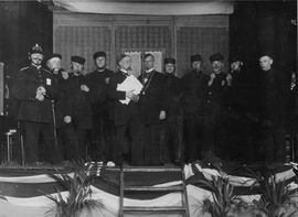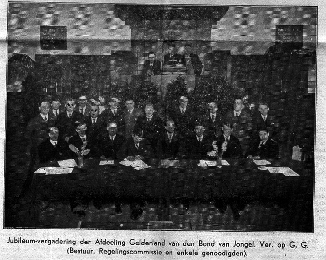 Dulfer - Johannes Hendrik (1912 - 1983) Anti-Revolutionaire Partij Henk was reeds vroeg actief in de partij. Bij het 50-jarig bestaan van de A.R. kiesvereniging "Nederland en Oranje" op 22 maart 1935 deed hij mee aan een allegorische voorstelling onder de titel "ANNO 1885". Oranjevereniging Ede (1935) Henk was zeer geinteresseerd in politiek. Dat blijkt niet alleen uit zijn actieve deelname in besturen, maar ook uit zijn verzameling verkiezingsdocumenten en -posters (zie bruine map in archief). Kiesvereniging Wageningen: voorzitter van 1959-1966 (zie dankbrief van bestuur) Statencentrale Ede: lid van bestuur Provinciaal Comit� Gelderland van A.R. Kiesverenigingen namens Statencentrale Ede: .. - 1969 (penningmeester van .. - 1969) Centraal Comit� van A.R. Kiesverenigingen namens Provinciaal Comit� Gelderland; lid van bestuur in de periode .... Gereformeerde kerk Lid van het Provinciaal bestuur van de afdeling Gelderland van de Bond van Jongelings Verenigingen op Gereformeerde Grondslag (kortweg aangeduid als J.V.). Er is een kopie van de Geldersche Kerkbode van 6 januari 1934 bewaard gebleven (zie archief) waarin een foto van de jubileumvergadering in 1934 staat (Henk staat op 2de rij, 2de van links). Via de gezamenlijke activiteiten van de J.V. met de vrouwelijke pendant M.V. leerde Henk zijn toekomstige vrouw Ali Ploeg kennen. Zij was actief in Ermelo. Ede: Erevoorzitter van de zusterkring (tekening van de Zuiderkerk - gemaakt door Joop Haffmans - werd op 18 mei 1942 ondertekend door de aanwezige dames en door de Eerevoorzitter J.H. Dulfer) Wageningen: lid van Commissie van Beheer Amsterdam-Bijlmermeer: lid van Commissie van Beheer Tante Loes (januari 2000) antwoordt op vraag van Gerard of de Vrijmaking nooit een punt van discussie geweest is dat het haar niet verbaasd zou hebben als Henk zich tot Vrijmaking aangetrokken voelde. Voor de oorlog was hij een grote fan van Professor K. Schilder (zie briefje van Schilder d.d. 23 januari 1934). Had veel van zijn boeken. In de oorlog was de latere voortrekker van het GPV, Piet Jongeling, in Sachsenhausen een grote vriend van Henk. Volgens Tante Loes heeft Moeder (Ali Ploeg) hem waarschijnlijk van stappen in die richting afgehouden. Volgens Tante Riek U. (januari 2000) speelde de hele kwestie van de vrijmaking in Ede niet. Er was dus eigenlijk geen keuze nodig. In haar verslag over de oorlogsperiode maakte Ali Dulfer-Ploeg ook enkele opmerkingen over de vrijmaking (zie linkerkolom). Christelijk onderwijs