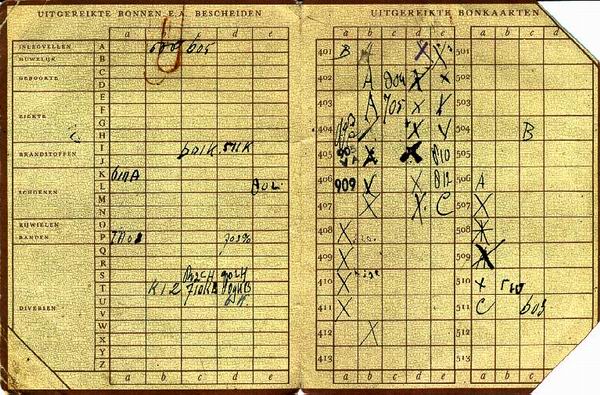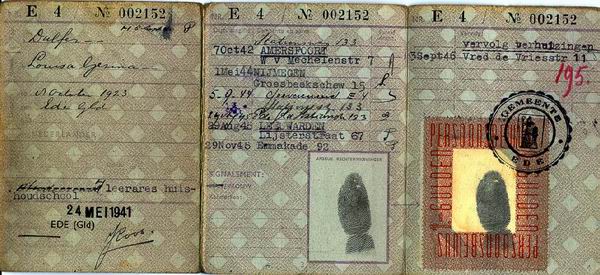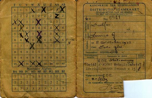 Speciaal persoonsbewijs van Loes Dulfer Distributiestamkaart