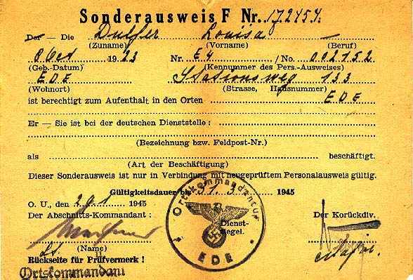Perssonsbewijs van Loes Dulfer Sonderausweis