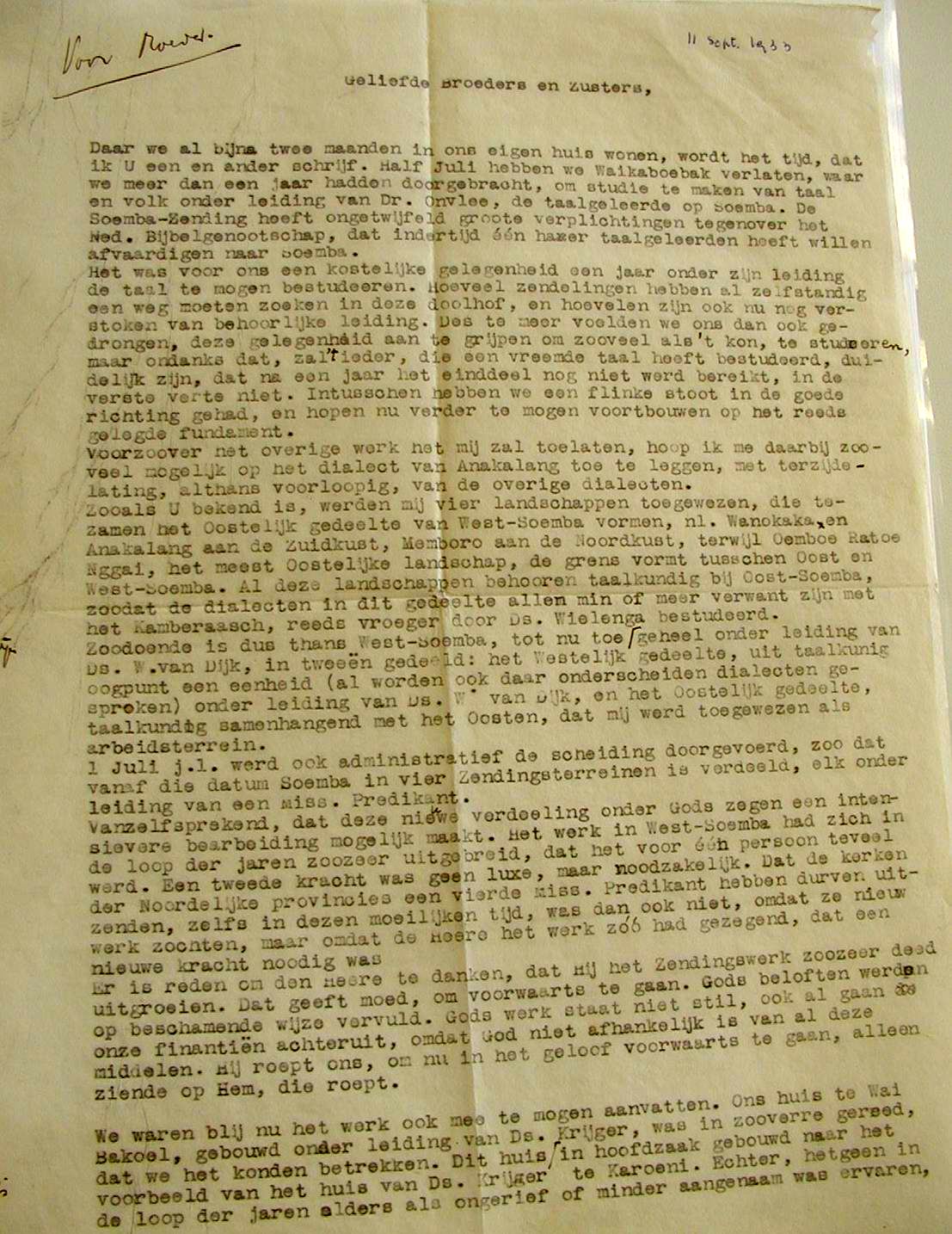 een binnenkomende Sumbanees een brief toe die hij moest oprapen. Moeder