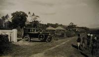 Ford verlaat het erf van huis in Anakalang Uitzicht over de vlakte voor het huis in Anakalang |