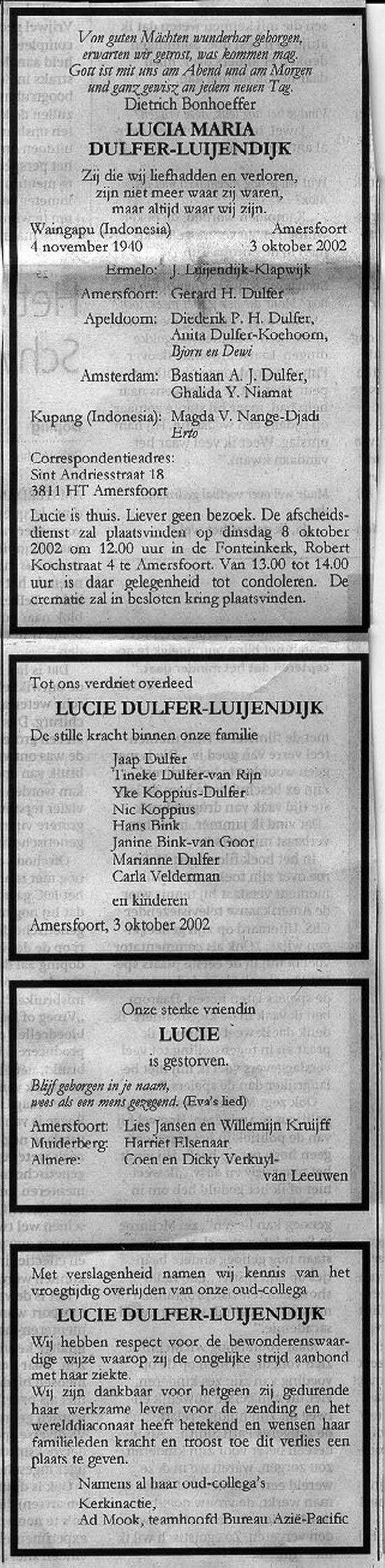 Luijendijk - Lucia Maria (1940 - 2002)